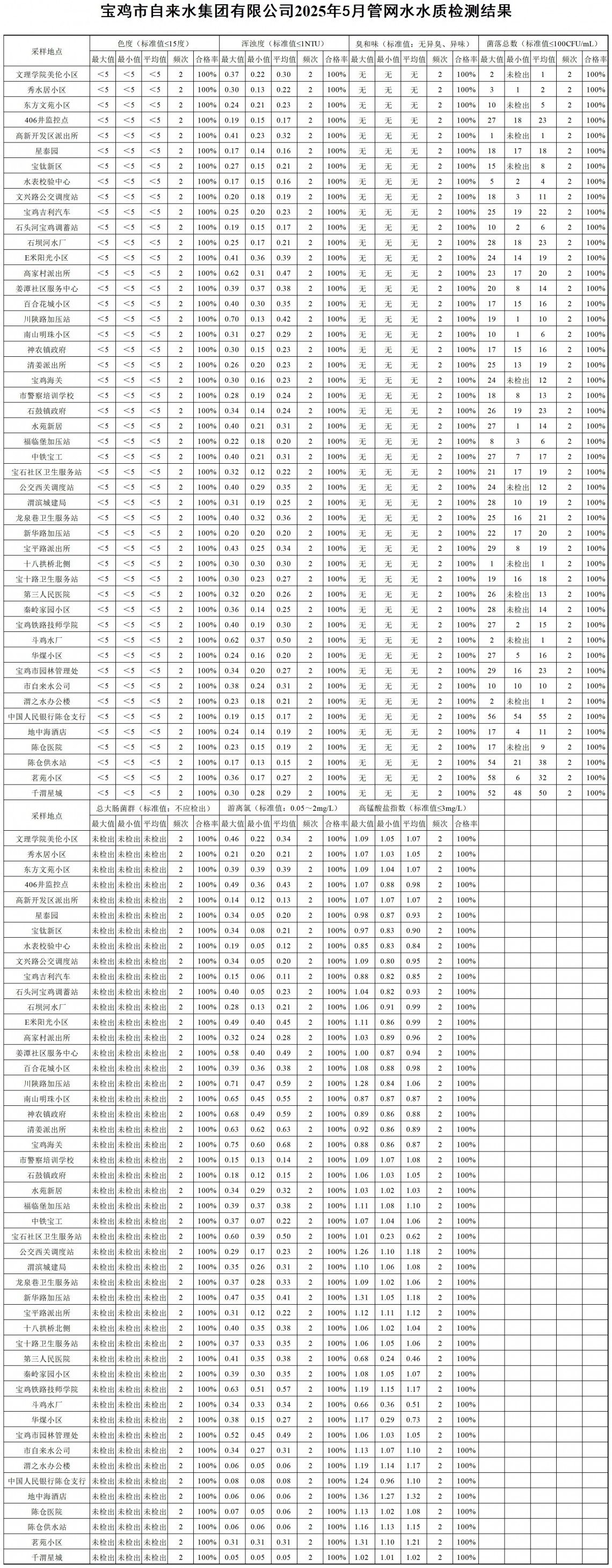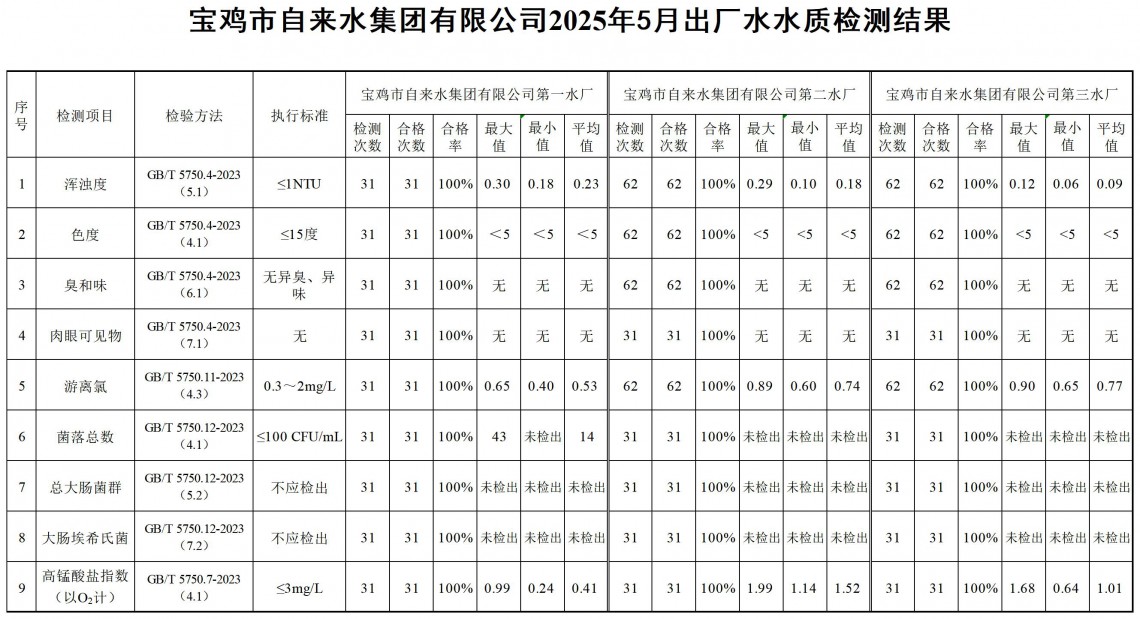 2025年5月水质公示
